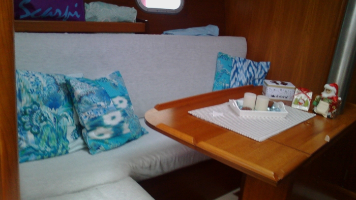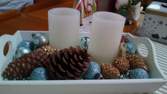 Bei der Eingangstüre habe ich oben am Balken wieder die Girlande aus Klapptannenzweigen (also künstliche Tannenzweigen :D ) aufgehängt und mit Kugeln und einer Lichterkette dekoriert.