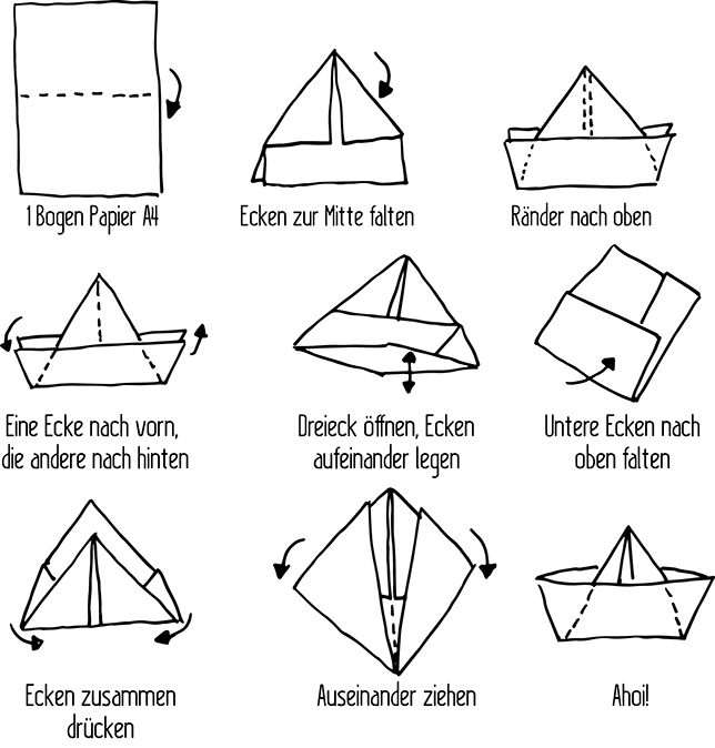Kleine Papierschiffchen falten, wer kann es noch wie als Kind !? Wer hat Anleitung für mich ! ?