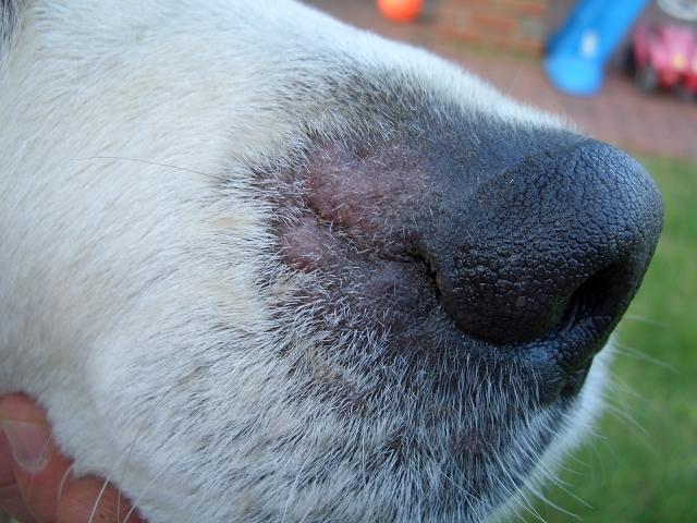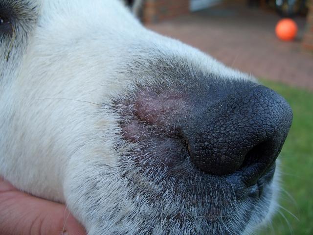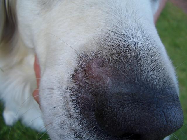 Unser Golden Retriever hat seit knapp einer Woche an einer Seite der Nase drei dicke Stellen.